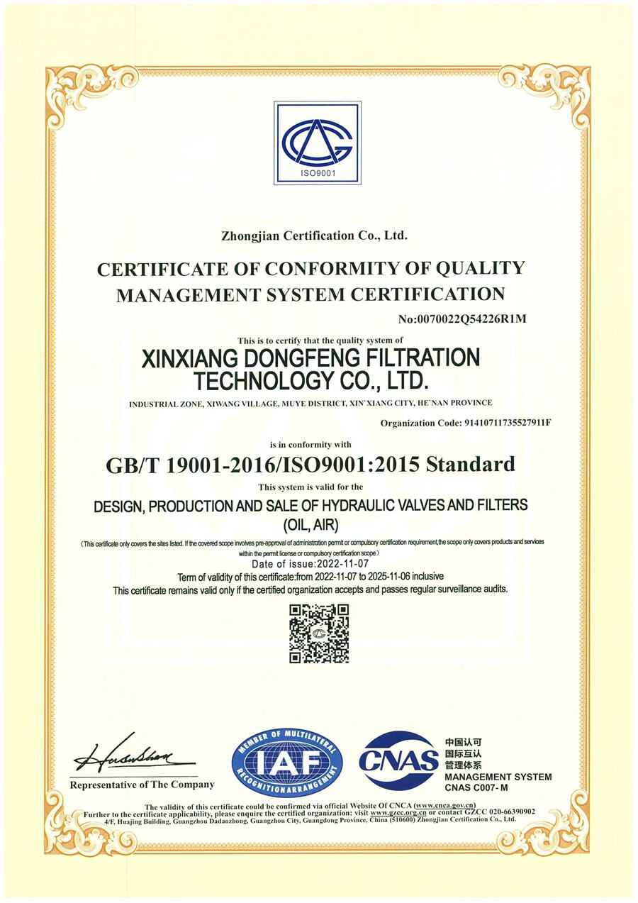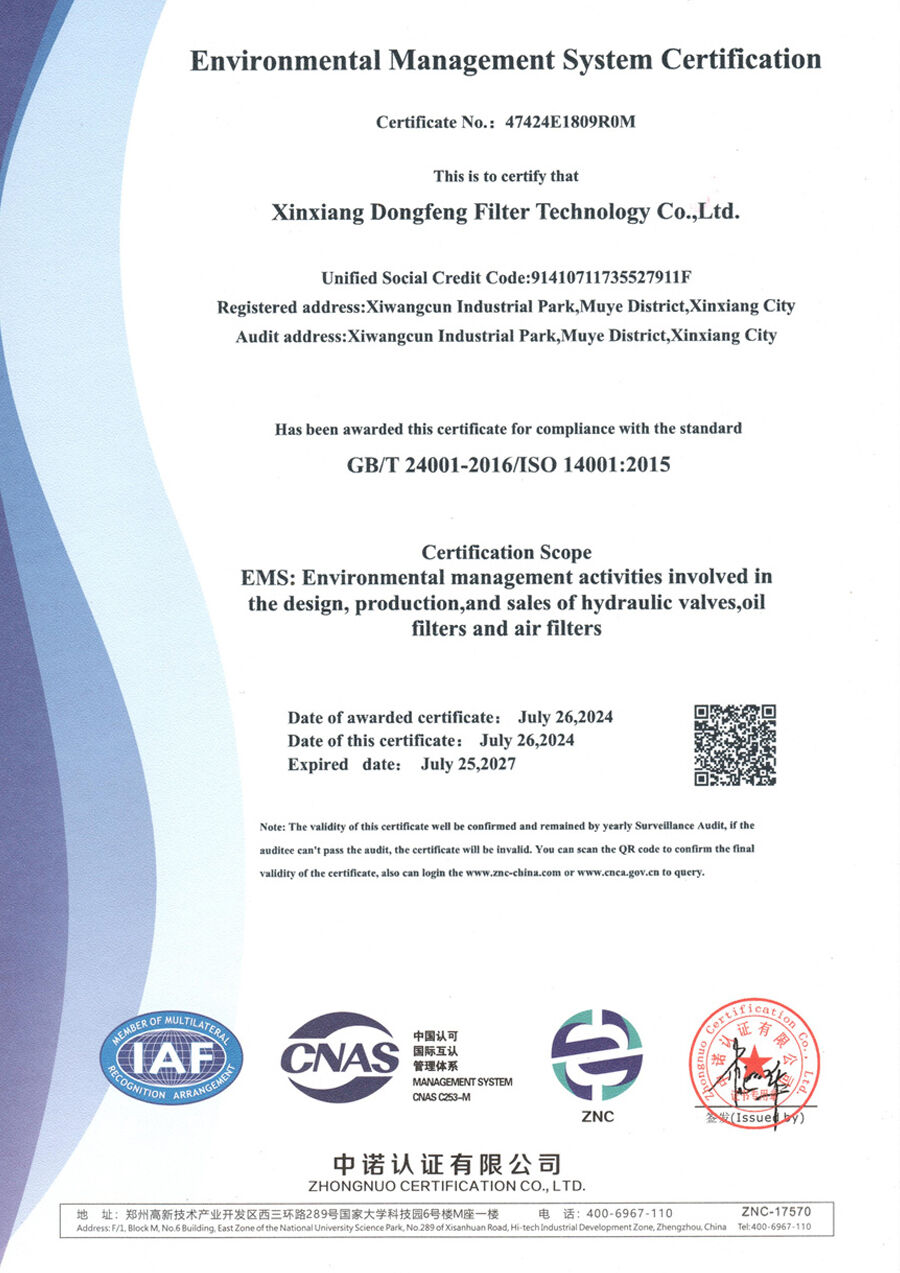 We are a filtration product full chain production enterprise that integrates scale, intelligence, quality control, and industry adaptability. The company has more than 100 professional technical and management personnel, more than 300 high-precision and cutting-edge equipment, and has 10000 square meters of 100000 level and 12000 square meters of 300000 level clean rooms. We have passed multiple certifications such as ISO9001:2008 international quality system certification, ISO14001 environmental system certification, ISO45001 occupational health and safety system certification, CE export certification, etc.