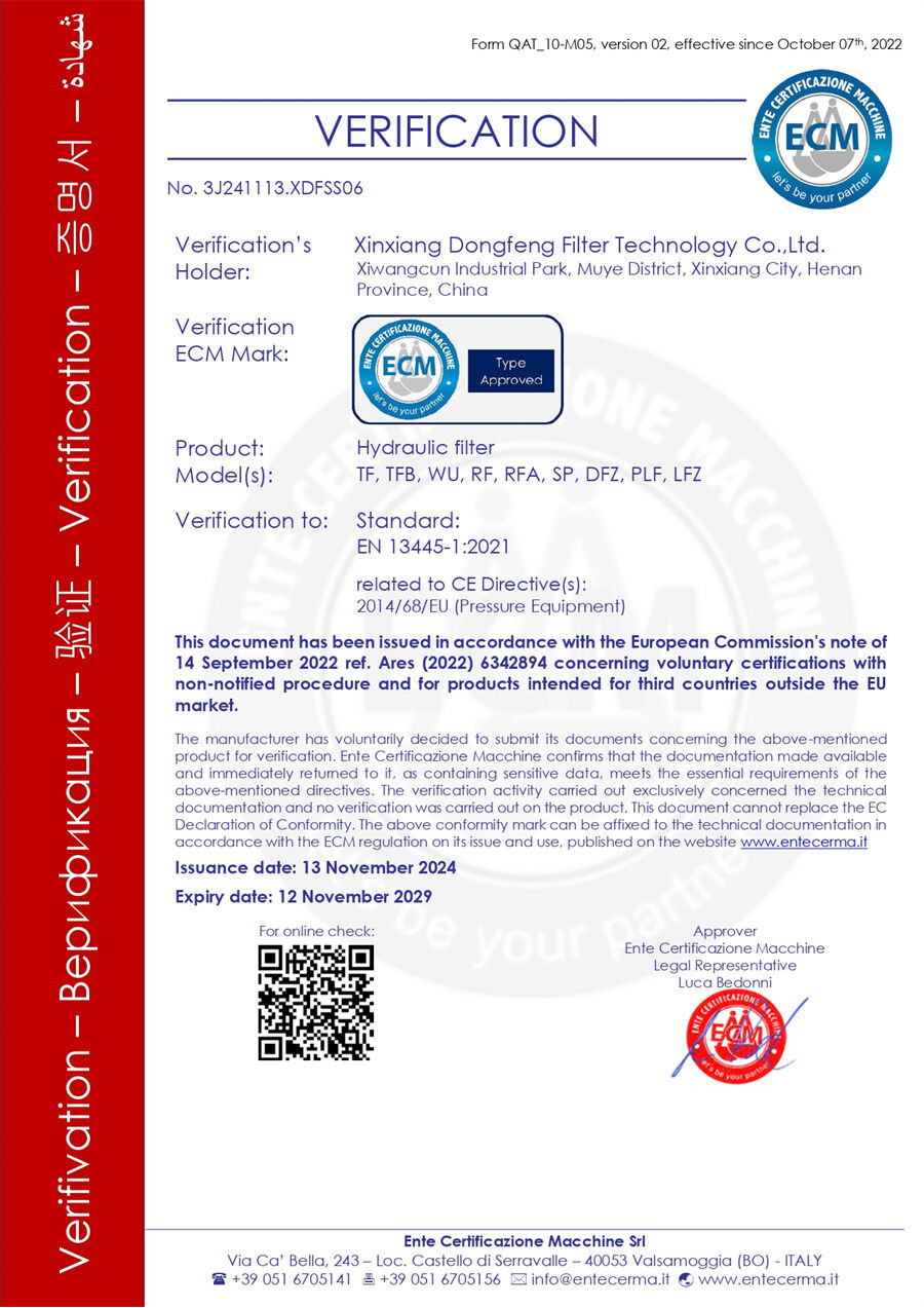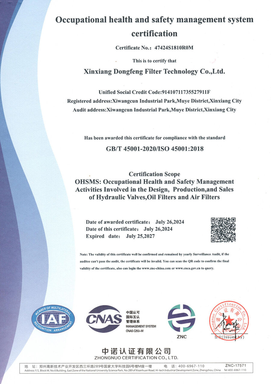 Xinxiang Dongfeng Filter Technology Co., Ltd. was founded in 2002 with a registered capital of 25.3 million yuan. It is located in Xinxiang, Henan Province, covering an area of 93000 square meters. The company mainly produces various types of filters, filter cartridges, oil filtration equipment, filtration product testing equipment, hydraulic accessories and other products, covering multiple industries such as aerospace, engineering machinery, mining machinery, coal machinery, petrochemicals, wind power generation, agricultural machinery, electronics, etc.